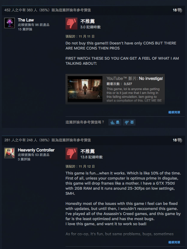 PC 版方面在 STEAM 亦有相當多的玩家負評,主要是不滿遊戲非常的不流暢以及多 Bug,就算用上高端 PC Frame Rate 也經常很低。