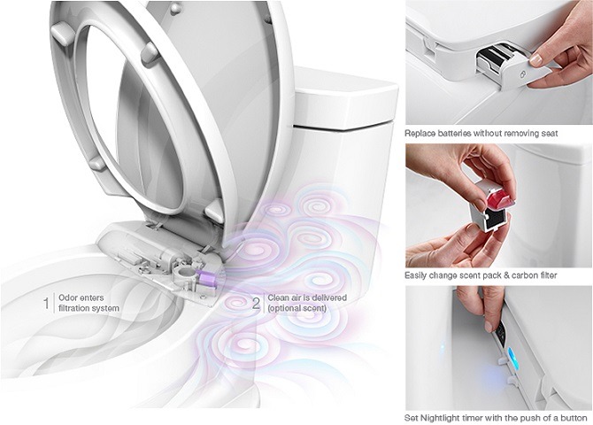 美國著名的廁具生產商 Kohler 早前發表了他們最新的 PureFresh 廁所板,解決了不少人認為非常尷尬,便便完後臭味會縈繞不散的問題。PureFresh 廁板擁有偵測功能,只要有人使用廁所就會自動啟動。