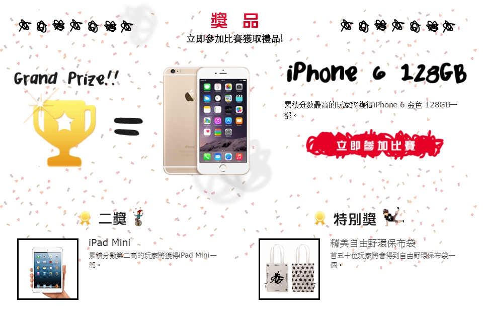 西九大型藝術節自由野快將舉行,主辦單位亦準備了小遊戲 FREESPACE CHALLENGE 以作推廣,遊戲可於 Android、iOS 及使用瀏覽器來遊玩。當中的 Challenge 關卡有計分比賽,高分玩家可獲 iPhone6 等獎品: