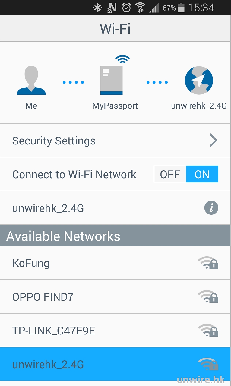 偏偏 WD 呢款無線硬碟就無呢個問題,只要身處可以接駁 Wi-Fi 上網的地方,即使硬碟接駁了手機,程式都容許手機用另一個 Wi-Fi 熱點上網,這樣手機睇到硬碟內的相片、影片等,亦可以透過 WhatsApp、LINE、電郵等程式與親友分享。