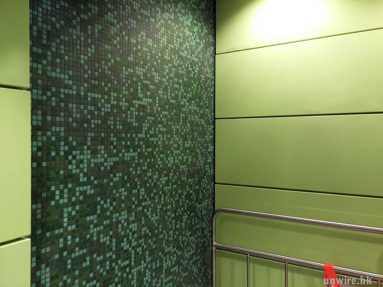 ▲香港大學站內亦出現了已少有在港島線出現的港鐵車站傳統紙皮石牆壁設計,好難得哦!不過這是預留給商店的內籠,當車站啟用並有商店進駐後,就未必可以睇到得了。