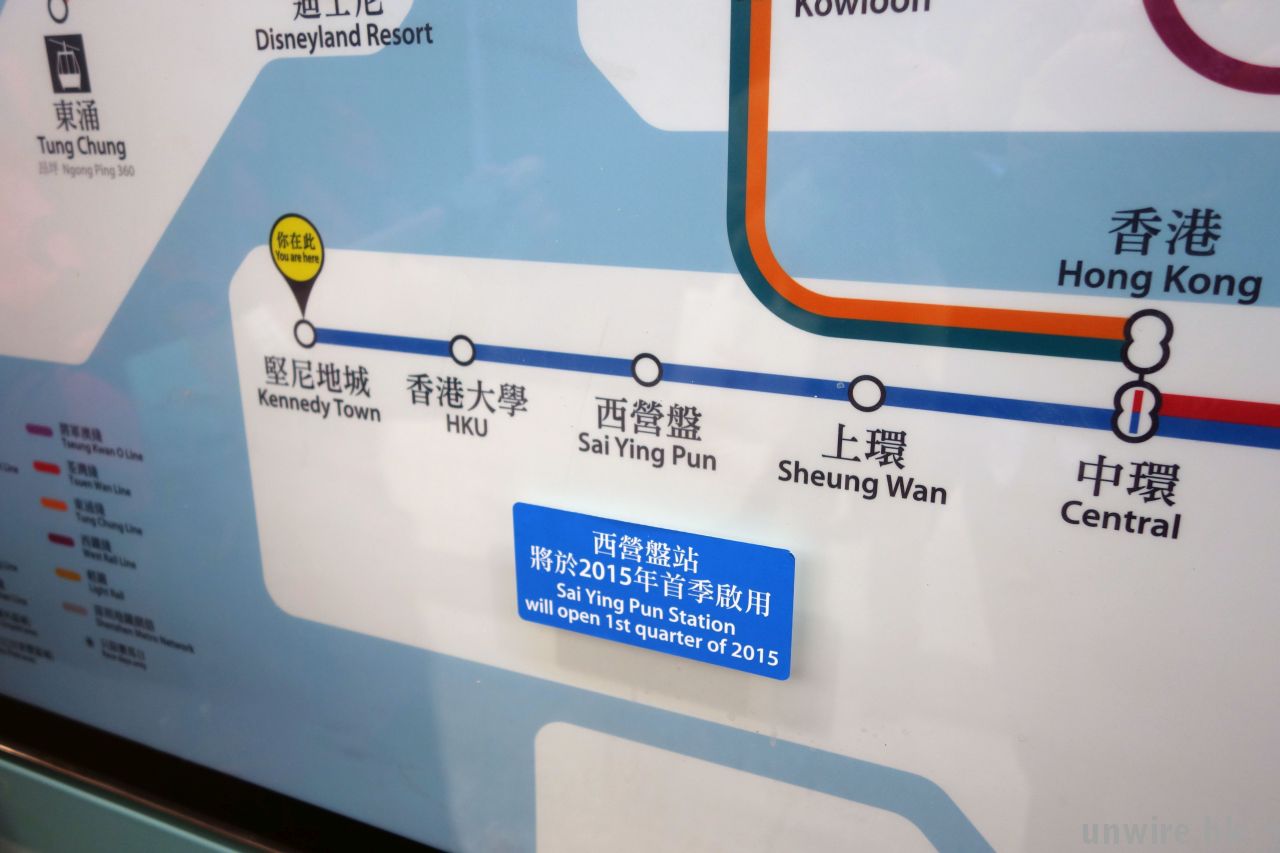 ▲唔止堅尼地城站,由於呢個係總站,所以就連香港大學站同埋西營盤站內的設施狀況都可以睇得到。