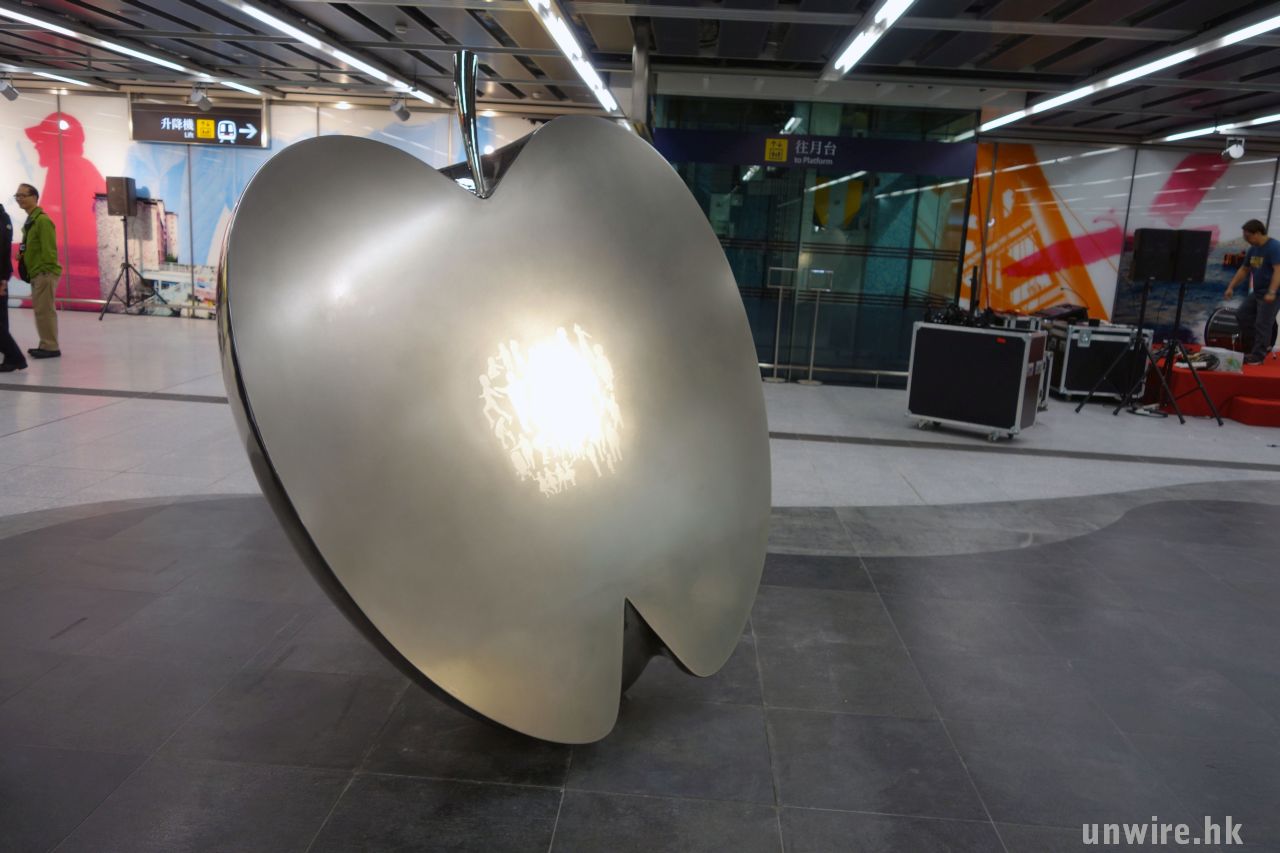 ▲西港島線車站加入唔少社區元素,例如:堅尼地城站的大堂就有一對切開了的銀蘋果。