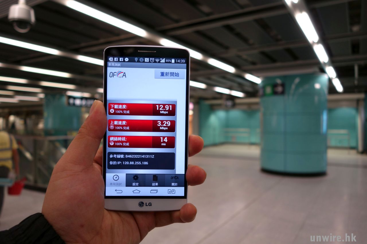 相信 unwire 讀者最期待就係究竟 3 個西港島線新站,在網絡接收方面表現如何?Edward 就測試過 csl.、 3HK 及中移動香港在月台及大堂的接收情況,發現無論在月台定係大堂閘內,csl. 的手機仍然只顯示 3G 網絡,不過下載速度仍然有 16.5Mbps 左右;而 3HK 的話,就月台及大堂閘內都收到 4G,速度已經有 60Mbps 以上;而中移動香港在大堂閘內亦順利接收到 4G 訊號,速度仲上到去 125.76Mbps,快到痴線!至於一出閘外大堂範圍,無論 csl. 定係 3HK 都可以順利收到 4G,3HK 與閘內速度相若,而 csl. 都有 74Mbps 左右。所以大家就唔洗擔心新站網絡接收差啦。Edward 都有就點解月台只收到 3G 詢問過港鐵方面,他們回應指現時 3 個車站仍未開幕,所以網絡商仍就網絡表現方面進行微調,待車站開幕時,應可確保西港島線所有站及月台都接收到 4G 訊號。