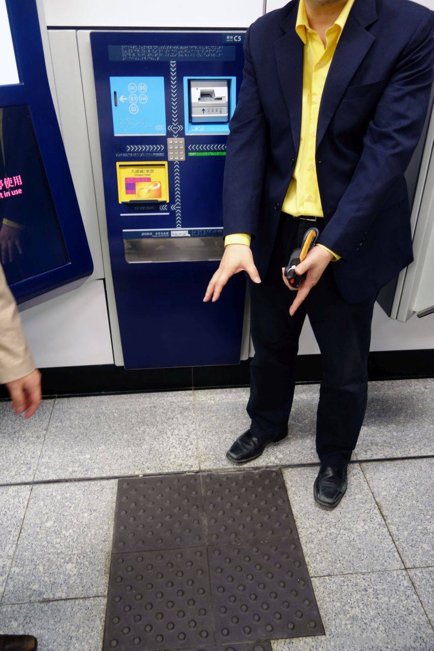 ▲售票機亦有唔少為傷健人士而設的設施,例如:地上有膠粒指示傷健人士到指定的售票機買飛。