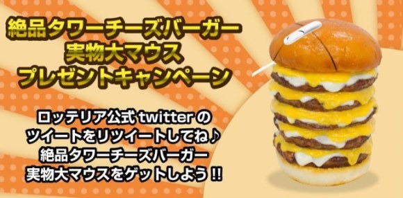 日本快餐連鎖店 Lotteria 經常都會推出獨特的食物,例如有 5 塊漢堡、5 塊芝士的 Tower Burger 塔形漢堡包。為了宣傳 Tower Burger,Lotteria 早前舉辦了抽獎活動,送出 1 : 1 真實大小的 Tower Burger 滑鼠。
