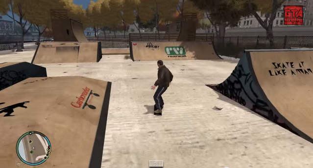 Grand Theft Auto 的版圖一向採用開放式世界設計,玩家可以發掘城市內各國地點,進行不同活動。以 GTA 5 為例,遊戲提供了包括賽車、三項鐵人等的活動讓玩家參予。最近有玩家更妙想天開,嘗試將上一集 GTA 4 變成滑板遊戲。