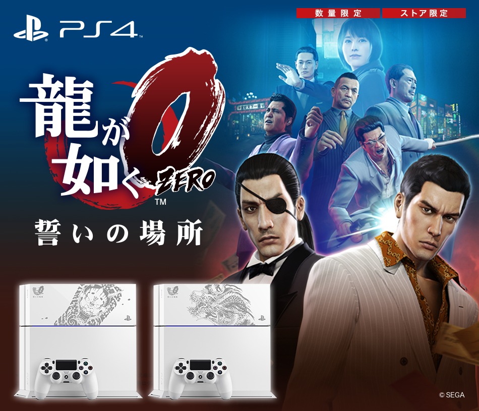 《人中之龍 Zero 誓言的場所》將會在明年 3 月 12 日在日本開賣,為了配合推出,Sony 特別為遊戲推出限量同梱包,和大部份同梱包一樣,Sony 會在 PS4 機身印上特別圖案。