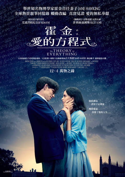 要多少的愛才足夠令一段關係維持到一生一世呢?這條數 Steven Hawking 都未必計到,聽到霍金只會令人聯想起宇宙、時間、黑洞,《霍金:愛的方程式》(The Theory of Everything) 把霍金的愛情浪漫地展示出來,如果你覺得霍金的世界、故事只有眼淚,你就錯了,他積極面對困境的態度,令他的悲劇人生豐富,從電影中可以感受到他的非凡魅力。