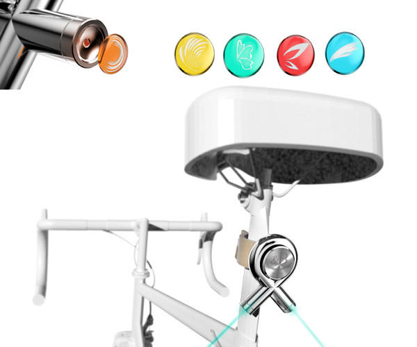 設計師 Min Keun Kwon 的概念單車燈名叫 &B,利用雷射光的原理將圖案投射到地面。設計容許用戶更換不同的顏色和圖案,例如火焰、翅膀、光環等等。除了視覺效果夠搶眼,亦因為投射範圍較大,讓後車知道單車需要佔用的空間。&B 本身採用金屬簡約設計,只需要 2 枚 AA 電池就可以推動。