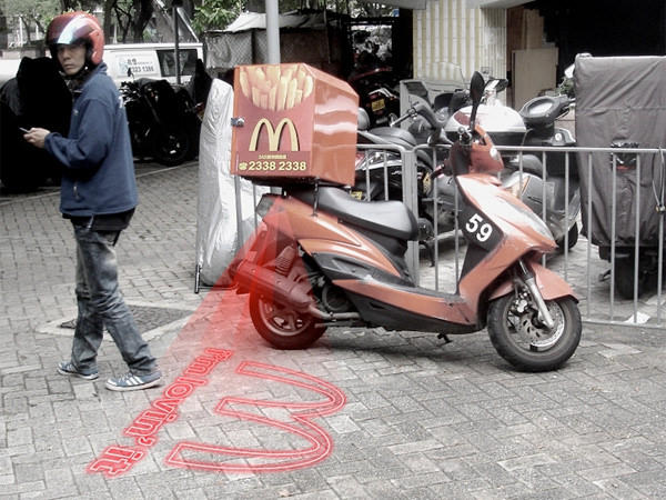 在單車以外,設計師還想到讓商業車輛安裝然後投射品牌商標到路面,用在外賣速遞的電單車上,是十分獨特的流動廣告。可惜的是 &B 現在仍然是概念產品,期望有一天我們可以在單車上安裝 &B,然後在路上炫耀一下。