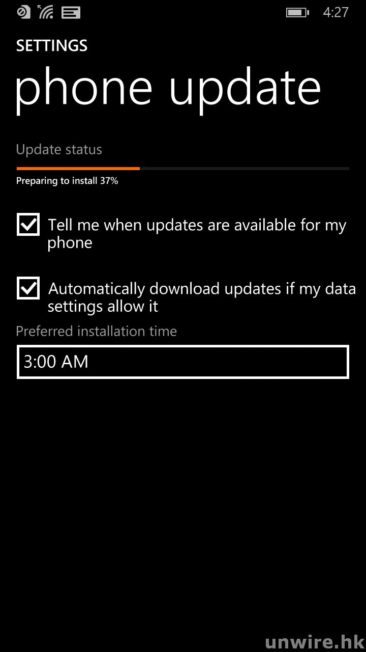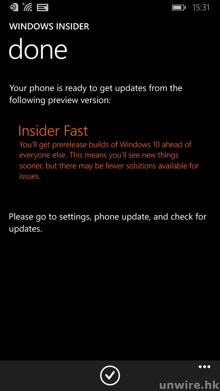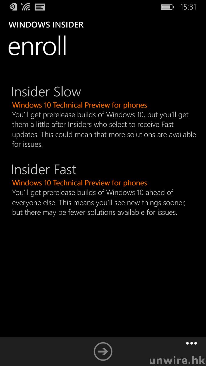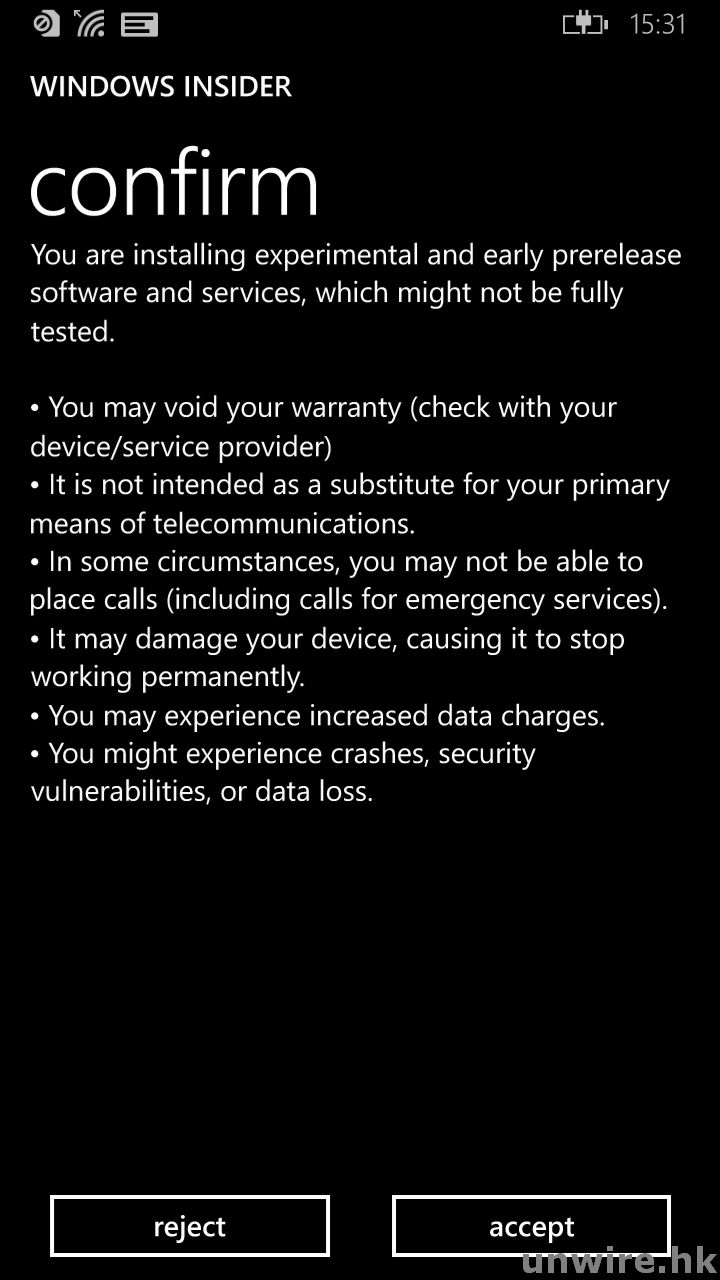 以上幾款機才可以支援升級。如果你的手機並非上述 6 部之一,就建議大家再等一陣,待 Microsoft 宣佈支援才試用吧,否則手機因夾硬升級而導致損壞,保養是不包的。另外,大家要確保手機有 8GB 空間,以及已安裝最新版本的 Windows Phone 8.1 OS,否則亦不能進行升級。