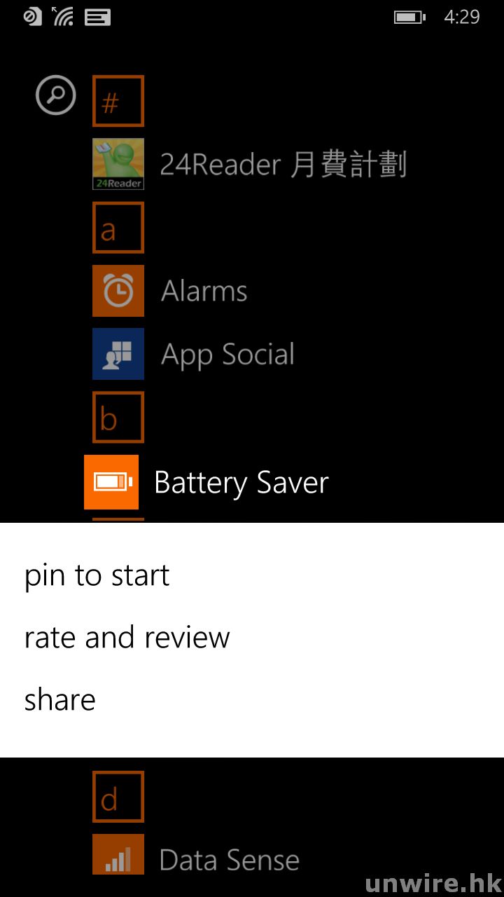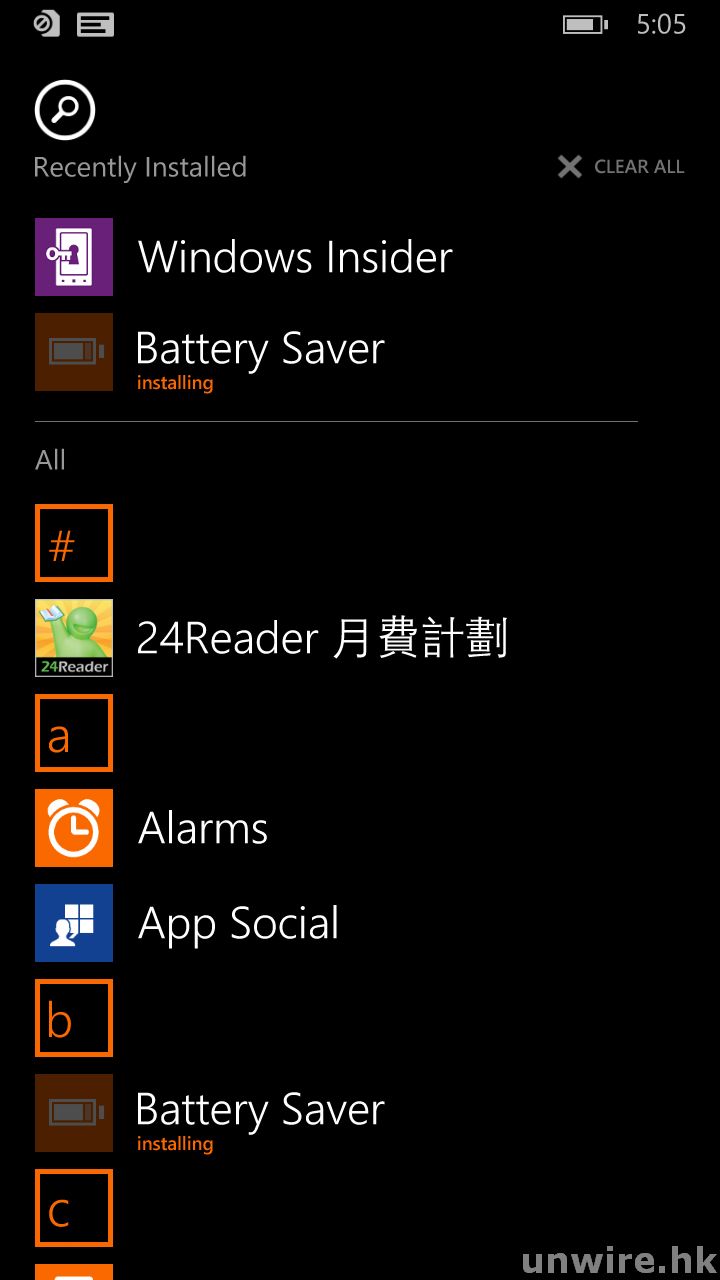 以前係 Windows Phone 8.1 或之前嘅 OS,要搵 APP 大家可以透過 search 功能或者按字母排序去搵,但如果一裝隻 APP 或者 game 想即刻試,搵英文名 APP / game 都仲容易啲,但如果 APP / game 係中文名,就要先數筆劃再慢慢搜尋,真係搵到天光都未搵到。Windows 10 手機版就有一項幾體貼嘅功能,就係剛剛安裝嘅 APP,會顯示係程式列表最頂位置,咁大家裝完 APP / game 係最頂就可以搵到,然後即禁即試,覺得啱用 / 啱玩就可以即刻 pin to start,咁就可以省除慢慢搵嘅時間啦。