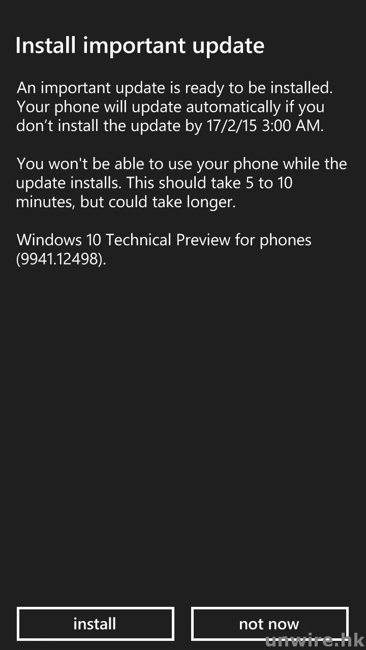 在同大家講試用後感前,相信有部分手擁 Windows Phone 的讀者,應該都有興趣一嘗 Windows 10 @ 手機的感受。以下就讓 Edward 先同大家講解安裝步驟吧。不過要記住,暫時並非所有 Windows Phone 手機都可以支援升級至 Windows 10 Build 9941.12498,暫時只有..