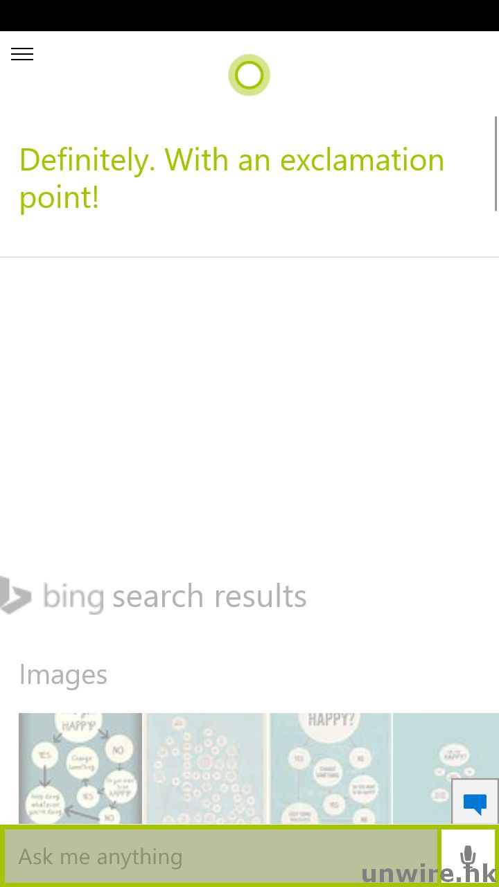 然後問下佢:「Are you happy?」,就得到以上回答,睇來 Cortana 同我都相處得幾好咁。
