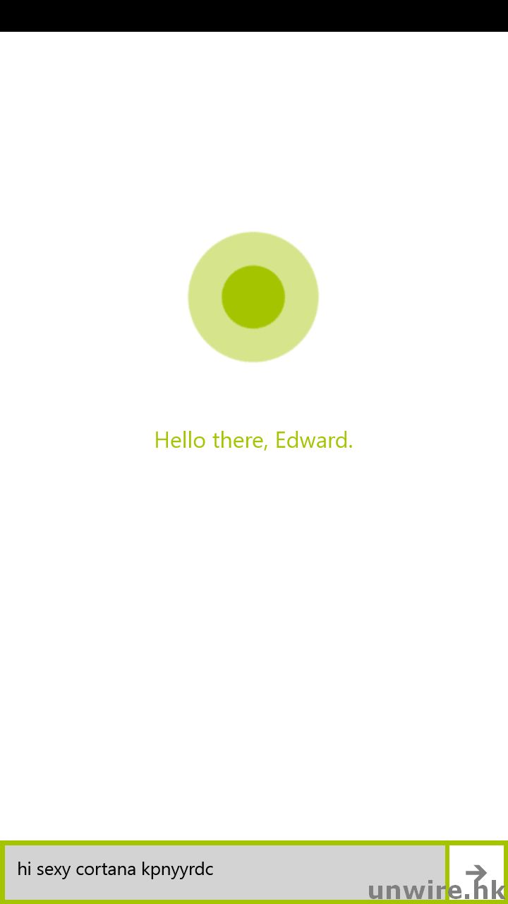好啦,轉咗做英文,開始測試。首先在設定入面大家要先輸入自己嘅名,我就當然輸入 Edward 啦,事後可以聽番 Cortana 讀番你個名啱唔啱,如果唔啱可以再設定過。不過記住只能輸入歐美語系嘅名,Edward 就試過輸入「小編 」,佢比我入,但係就讀唔出個名,可能佢知 Edward 根本就唔係男神「小編 」啦,所以就好誠實咁唔讀出來啦(講笑 only~~)。