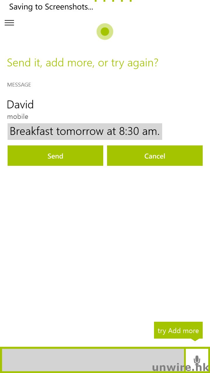 咁如果用來 send SMS 又如何?用英文 send 個 SMS 俾小編 ,約佢聽晚 8:30 食 dinner 先,不過可能 Edward 英文講得唔好啦,dinner 成日認咗做 Tina 或者 Dina,最後谷鬼氣唯有約佢食早餐,唉……