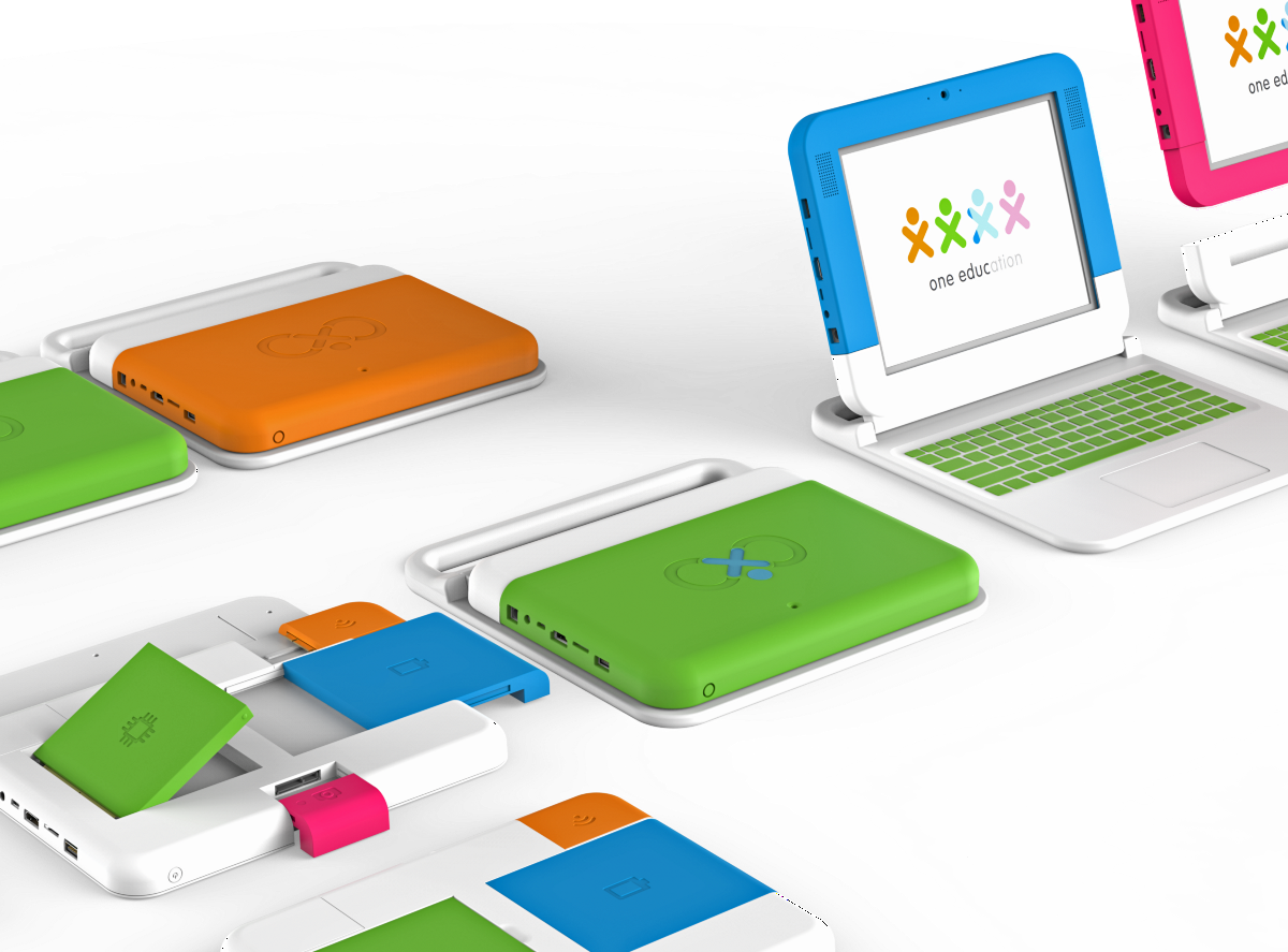 One Education 是 One Laptop Per Child(OLPC)計劃的分支,他們設計 XO-Infinity 電腦的目的是希望讓一部電腦可以滿足兒童整個成長期的需要。他們明白到兒童年幼時需要觸控式的操作;而年紀漸大則開始需要電腦協助完成功課,鍵盤變成必須品。