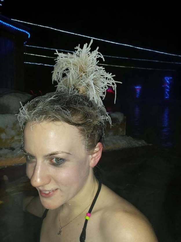 每年二月的時候,在加拿大的育空地區,Takhini 溫泉也會舉辦一個奇怪的頭髮結冰大賽。由於這個溫泉位於很寒冷的地方,而水溫又可以讓人舒適地泡溫泉,所以就會出現頭髮結冰但不至於覺得很寒冷的現象。今年的參加者同樣需要發揮創意,然後利用不同的方式把頭髮在寒冷的空氣中結冰塑型。
