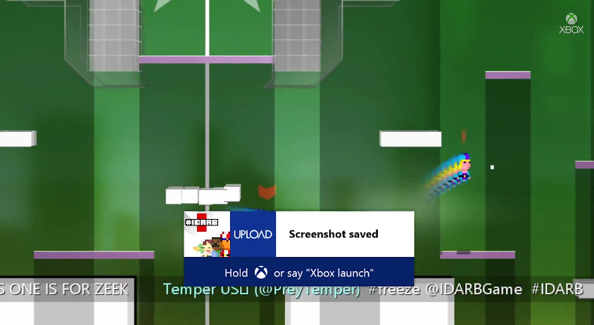 當中最讓玩家期待的,相信是加入截圖和分享功能。更新後,Xbox One 用戶只要連按 Xbox 鍵兩下,然後再按 Y 就可以儲存截圖。在 Kinect 則更加簡單,只要說出「Xbox, take a screenshot」即可。截圖可以通過 Upload App 儲存到 OneDrive 或在 Twitter 分享,亦可以用作系統介面的背景。