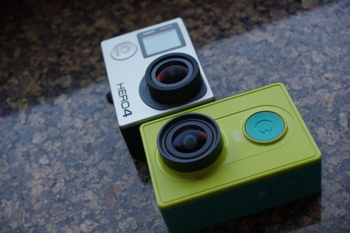 在小米科技的春酒活動中,小米也展示剛在中國發表的小蟻運動攝影機,同業朋友剛好身上帶著 GoPro Hero 4 ,也趁機拍照比對一下兩者的差異。