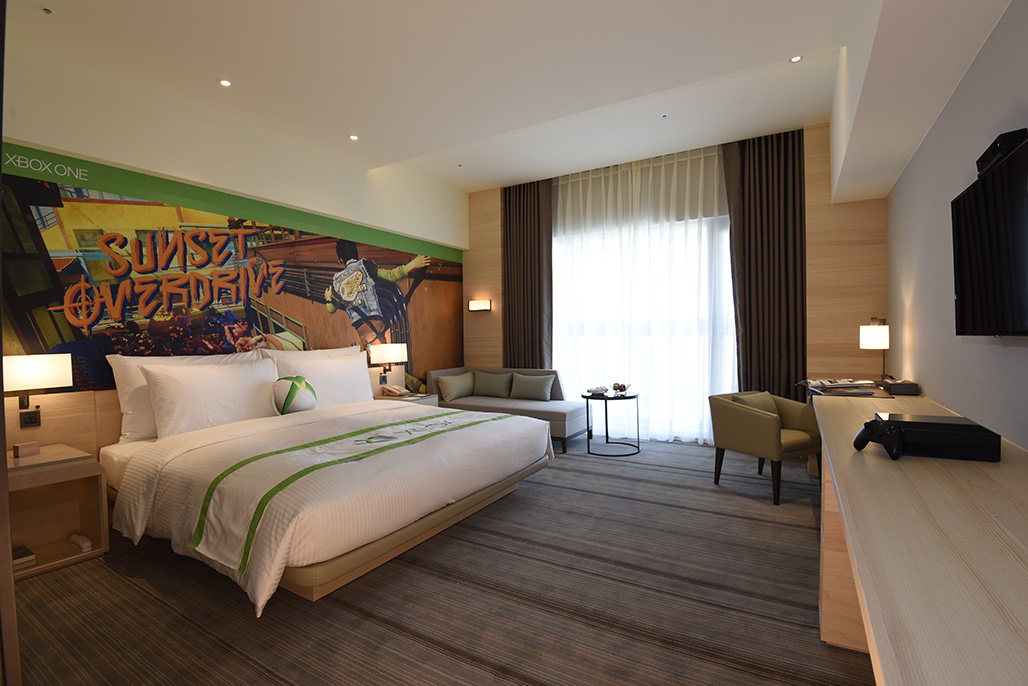 Microsoft 台灣和酒店集團國泰商旅合作,於 Hotel Cozzi 台南西門館佈置了 54 間主題套房,由房間牆壁到床單被鋪,就連拖鞋都加入 Xbox 遊戲元素。主題房間分別有《Halo》、《Forza Horizon 2》、《Max》、《Zoo Tycoon》等多款遊戲。除了享受被遊戲包圍的氣氛,還可以實際玩遊戲,因為每間房間都配備有一部 Xbox One 主機和手掣,讓住客可以試玩。