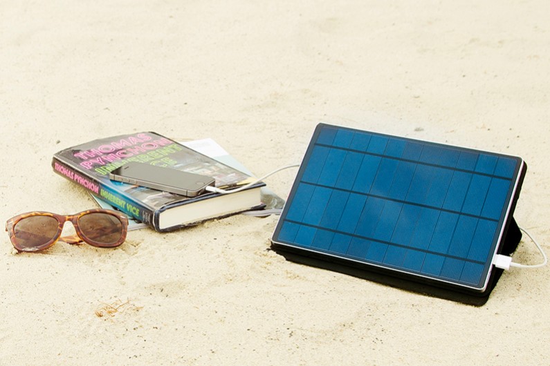 重量 1.2kg 的 SolarTab 內置 5.5W 太陽能板,能夠調整不同角度以吸取最多陽光;設計亦可以當作平板支架使用。在沒有陽光的情況下,用戶仍然可以 microUSB 為 SolarTab 充電。它有兩組分別 2.1A 和 1A 的 USB 輸出,能夠讓平板和手機等裝置一同充電。SolarTab 現正接受預訂,售價 119 美元(約 922 港元)。