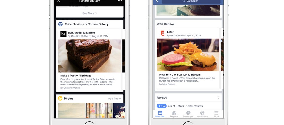 Facebook 日前宣佈測試新功能,將會和在餐廳的官方專頁上提供多間傳媒的食評。用戶在搜尋餐廳資料時,就可以見到食家和媒體對餐廳的評價,網民亦可以留低評語或作出討論。