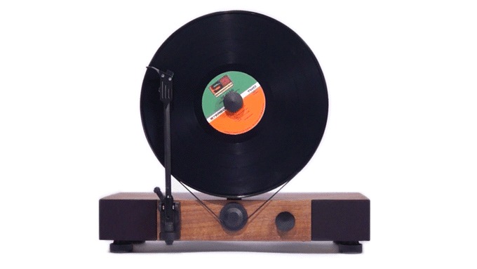 設計師表示,垂直的唱盤設計能夠減少佔用的平面。Floating Record 的底座以楓木或胡桃木製成,配合低震動的摩打和皮帶驅動系統,令到播放時更加穩定。它已經內置立體聲喇叭,亦有 RCA line out 讓用戶連接外置揚聲器。
