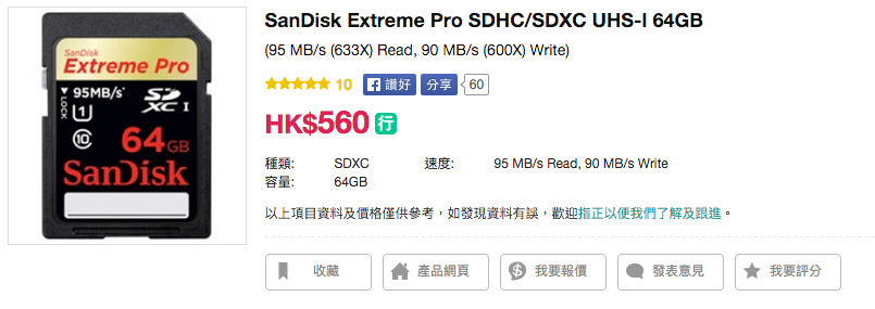 ▲上網 check 價就知,一張可以俾大家用到 4K 同埋 HFR 拍片功能嘅 UHS-I SDHC 64GB 卡都要 $560 左右,128GB 自然更貴!