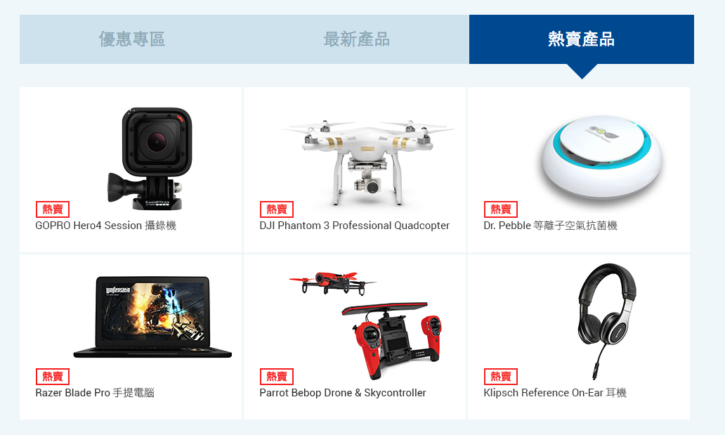 ▲HKTShop 內產品種類很多,不止有手提電腦、耳機,就連 GoPro 運動相機、航拍飛機都有。