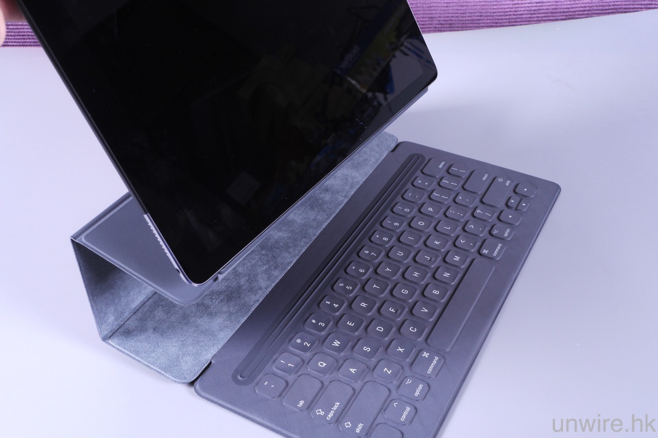 ▲呢個交接位其實都有磁石攝住,安裝完成後就算單手抽起 iPad Pro,鍵盤都唔會甩。