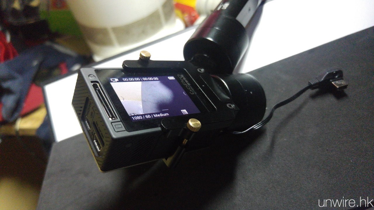 ▲唔只可以提高雲台嘅續航力,雲台附上一條 GoPro 充電線,只要接駁咗,就可以為你嘅 GoPro 充電