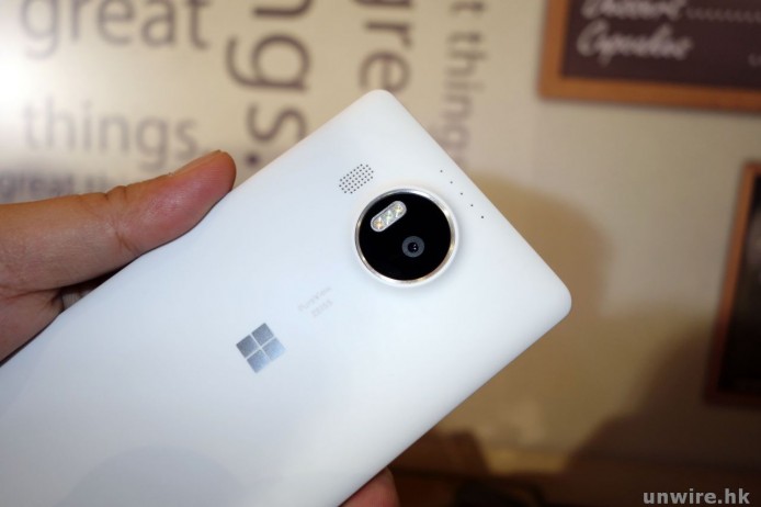 ▲Lumia 950(黑機)及 Lumia 950 XL(白機)的鏡頭均是 2,000 萬像素,並擁有 Zeiss 認證,鏡頭亦擁有 OIS 光學防手震功能,十分強勁。