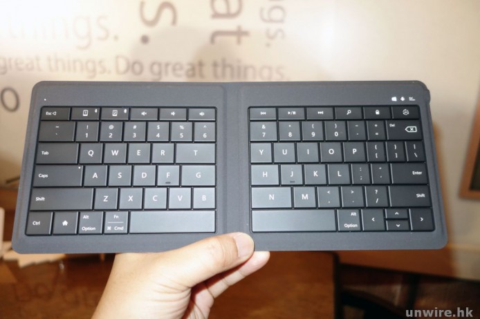 ▲當要使用時攤開就可以了,按上去筆者感覺與昔日的 Microsoft Arc 鍵盤頗相似。