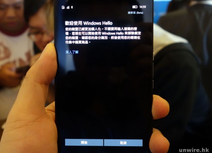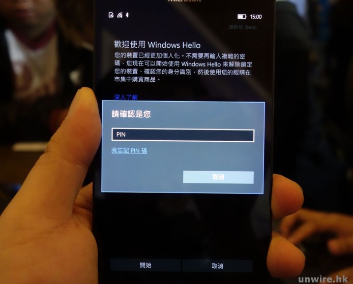 另外,Lumia 950 / 950 XL 作為 Microsoft 的首部 Windows 10 手機,自然內建早已在電腦上使用的瞳孔識別登入系統啦。在 Windows 10 手機版中,它稱為 Windows Hello(仍然是 Beta 版),大家只要在設定中登記自己的瞳孔,日後手機處於熒幕鎖定狀態時,只要用前置鏡頭對著自己的雙眼,只要通過認證就可登入手機,似乎比用密碼、或者指紋更為方便。不過由於今日記者會現場的手機全部有 PIN 密碼鎖著,所以筆者未能登記自己的瞳孔試玩 Windows Hello,唯有日後再為大家試試了。
