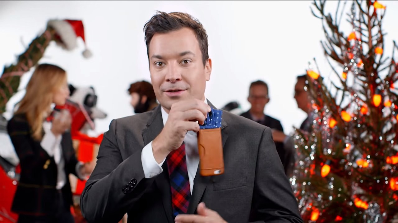 趁著聖誕購物旺季,Jimmy Fallon 找來時裝品牌 J.Crew 合作,將他的袋巾 iPhone 保護殼商品化。這款名叫 Pocket Dial 的真皮保護殼底部連接一塊裝飾用的小袋巾,袋巾分別有藍底白色波點、純白色和薑餅人圖案三款可供選擇。Pocket Dial 適用於 iPhone 6 和 iPhone 6s,還可以擺放信用卡或卡片。Pocket Dial 現正在 J.Crew 網站發售,售價 48 美元(約 372 港元),收益會撥捐作肯亞大象保育用途。