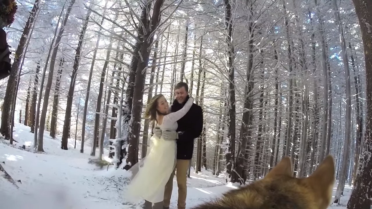 Addie 和 Marshall 都是愛犬之人,在拍拖 10 年後他們決定在田納西州的 Roan Mountain 上舉行一場戶外的冰雪婚禮。他們希望雪橇犬 Ryder 都能夠參予其中,於是在牠的身上綁了一部 GoPro。Ryder 將兩名主人在家中準備、出發往山上、溫馨的婚禮,以至賓客的笑容和婚禮後的派對通通記錄下來。雖然 Marshall 之後花了不少時間剪片,不過她就說 Ryder 作為攝影師十分出色;這個婚禮雖然冰凍但同時非常奇妙。