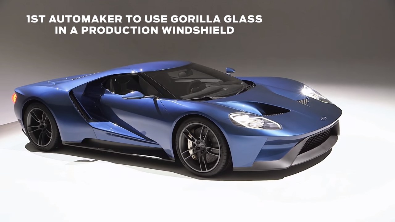 究竟 Gorilla Glass 的擋風玻璃如何令 Ford GT 跑得更快?原來是玻璃重量較一般的輕了約 12 磅,大概比同級跑車的輕了 32%,所以 Ford GT 就可以有更佳的表現。Ford 解釋指傳統擋風玻璃採用雙層玻璃以透明膠紙黏貼在一起,而 Corning 製造的 Gorilla Glass 則以強化玻璃製作內層,再以吸音塑膠製作中層,最後再以退火玻璃製作外層。Ford 指 Gorilla Glass 比一般擋風玻璃強,同時又輕 25% 至 50%。