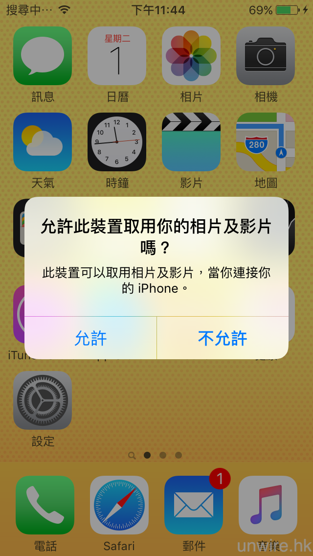 ▲首先,一如此接駁後,iPhone 會問你是否允許此裝置取用你 iPhone 內的相片及影片,此時點按「允許」。