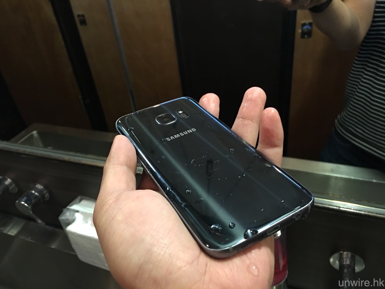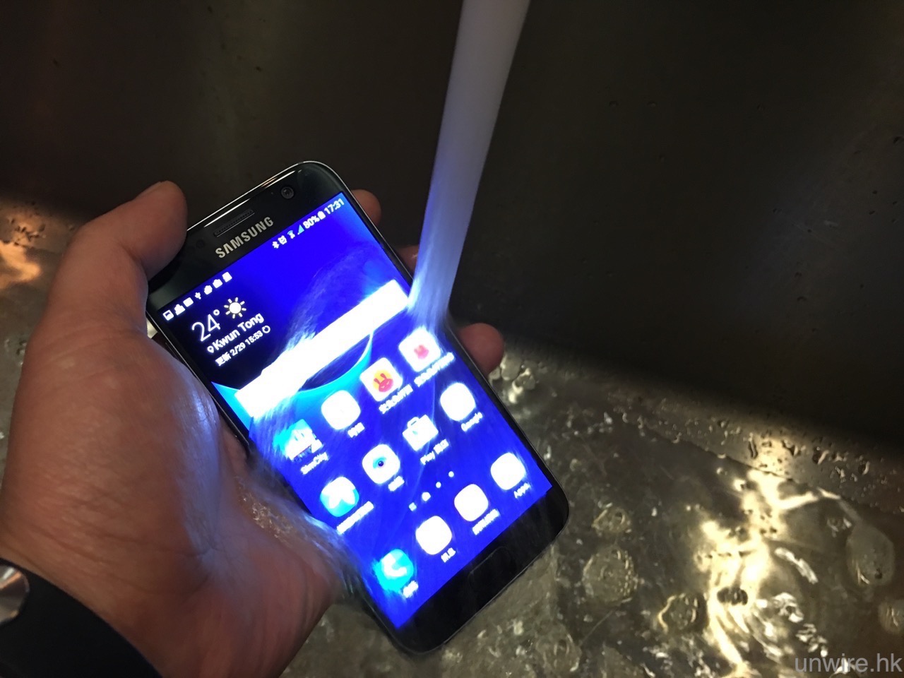 ▲另一項「回歸」的,就是曾出現在 S5 的防水防塵功能,終於在 S7 / S7 edge 上返來了。大家可見就算筆者將 S7 放在水龍頭下沖洗,都未有影響機能,大家日後在水中或雨中使用就大可放心了。