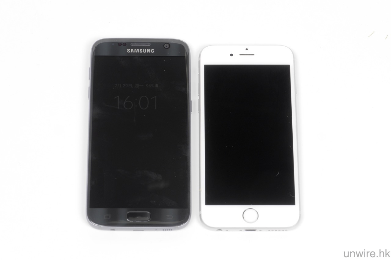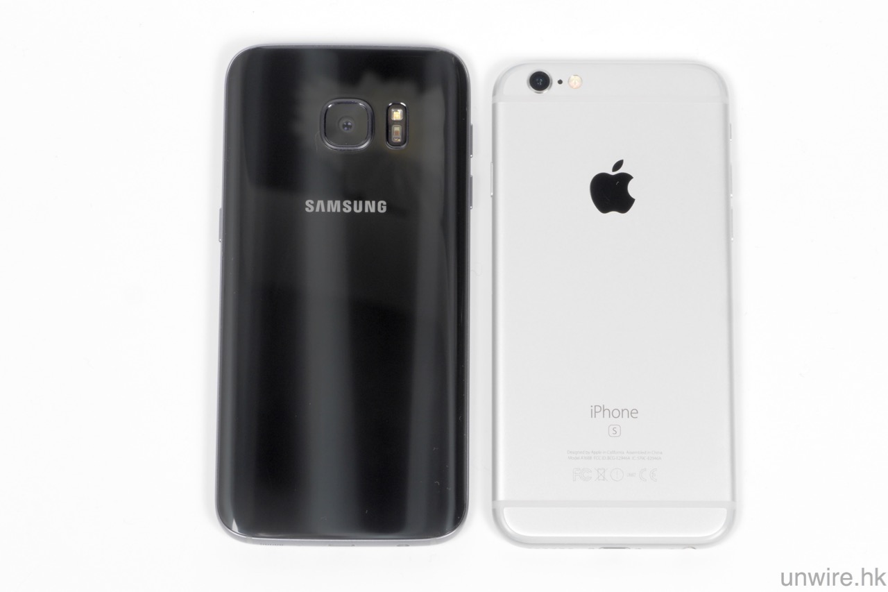 ▲另外 S7 相比 iPhone 6s,可見熒幕大了達到 0.4 吋,但機身卻不是大很多。