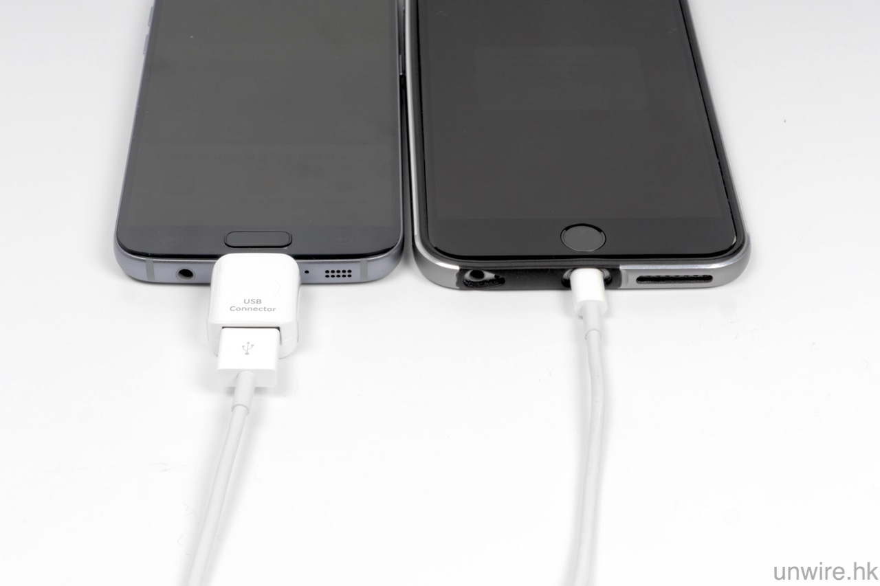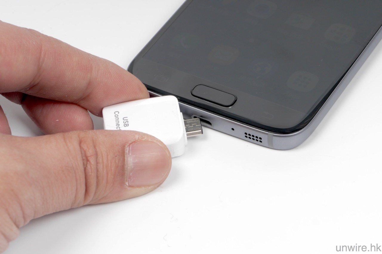 此外,今代 S7 / S7 edge 隨機會附送一粒 adapter,一邊是 Micro USB 插頭,而另一邊就是 USB 大頭插槽。究竟有什麼用途呢?平常大家可以當它做 USB 轉接器,這樣插上一般 USB 手指或硬碟,就可以在手機直讀內裡檔案。但它有一個更重要的功能:就是過機!相信有些 wire 民都曾經經歷過由 iPhone 轉會 Android 的苦惱,在 S7 / S7 edge 上,只要利用這個轉接器,就可以直接用線接駁 S7 / S7 edge 及 iPhone,再透過 Samsung Smart Switch 這個內置軟件,就可以將 iPhone 內的聯絡人、日曆、備忘錄、時鐘、網絡設定、wallpaper、相片、影片、音樂等一次過抄到新機。而且筆者測試過,抄 12.25GB 檔案到新機,都只需要 1 小時左右,超級快哦!這功能唯一不便,就是 WhatsApp、LINE 等軟件的紀錄,就無法用它轉移到新機了,如果大家想知道如何轉移,可以參考去年筆者撰寫的轉會攻略。