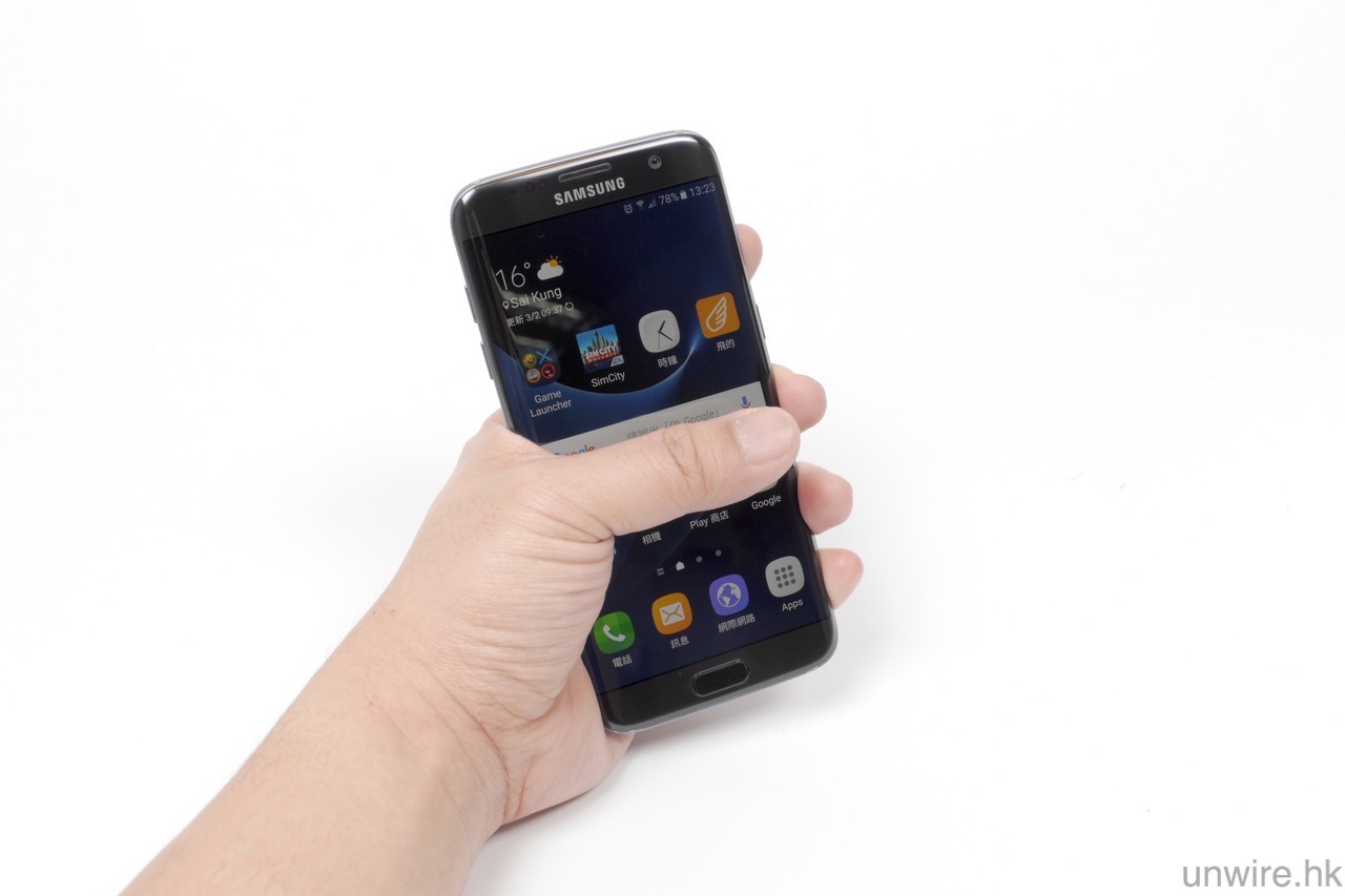 ▲但 S7 甚至更大熒幕的 S7 edge 亦同樣可能輕鬆做到單手操控,這一點設計就確實是 Samsung 贏了。