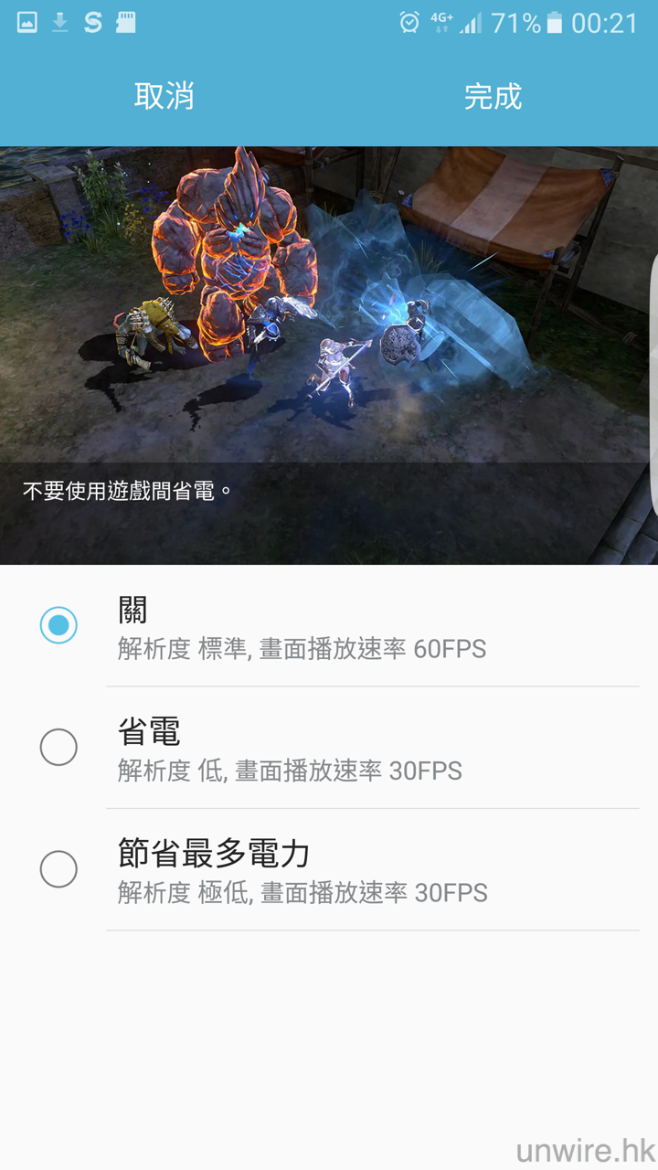 ▲在 Game Launcher 中,用家還可以設定遊戲效果,如果遇上手機不夠電但又好想打機個時,可以降低熒幕解析度,咁就可以繼續勉強玩到又唔驚太哂電了。
