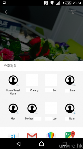 此外,升級至 Android 6.0 後,大家在相簿瀏覽相片時,只要點按分享鍵,頂部就會列出所有加入至「我的最愛」的連絡人,只要點按指定連絡人,就可以輕鬆與對方分享相片。除了 SMS 外,還支援 Gmail 及 Whatsapp 等,可能大家不會再用 MMS 短訊向親友傳送相片,但今時今日 Whatsapp 更方便。