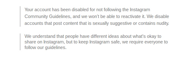 雖然 Sue 按照既有機制上訴,但 Instagram 只循例發送郵件回覆,表示不會將帳號重新開啟,令到 Sue 因為失去所有相片和準確非常失望。事件經過傳媒報導和查詢後,Instagram 才發現系統出錯,表示會將帳號解封和對受影響的 Sue 致歉。