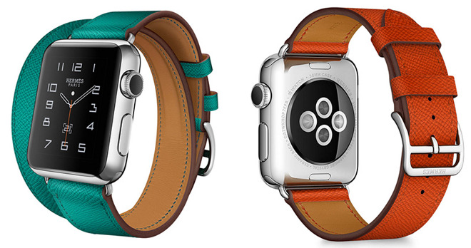 Apple Watch Hermès Collection 在去年 10 月首度推出,當時有 Single Tour、Double Tour 和 Cuff 三種真皮錶帶款式,配合 38 或 42mm 的不銹鋼版 Apple Watch,每隻 Hermès 版都有品牌特別設計的 Watch Face 錶面。4 月 19 日起,顧客將可以獨立選購 Hermès 的真皮錶帶,而且還有新色孔雀藍、寶石藍、純白和品牌經典橙色。
