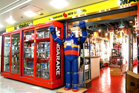 Mandarake 以發掘珍藏漫畫、手稿等起家,原本是中古漫畫的專門店,後來亦進展至售賣各種模型、精品、同人誌、Doll 等。Mandarake 對比起其他宅店別具一格,因為它很常收集陳年玩具/模型,尤其會收集很多珍品,喜歡懷舊的話 Mandarake 是必去尋寶的地方。Mandarake 在秋葉原有大型店,不過在大阪兩間店就近梅田及心齋橋,從日本橋前往後者的話要走一段路程。