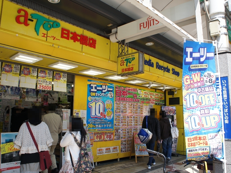 想買懷舊遊戲的話,亦要到 Super Potato 走一次,它主力是買取及售賣紅白機、超任、MG 等的 Retro 遊戲,數量非常之多,而且亦有舊攻略本、主機、周邊等售賣。Super Potato 在秋葉原及日本橋都有店,在日本橋方面還有 2 間,一間較近難波站出口,一間就在 a-Too 地面。
